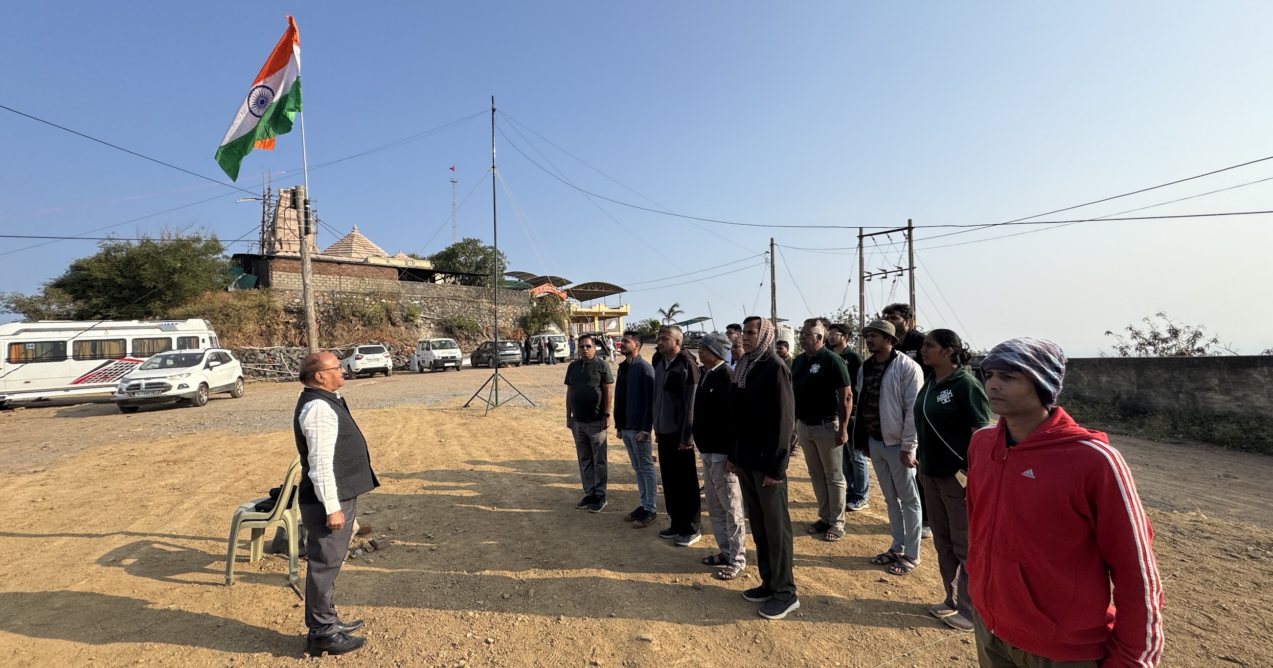 A team lead by Pravin Valera VU2CPV, including Amitsinh VU3FFU, Hirensinh VU3FFV, Dhiren Tank VU3HXS and Ruchir Purohit VU3NZT arrived the previous night to set up the 40-meter and 20-meter antennas. In addition to the radio infrastructure, they arranged chairs, water, electricity connections, banner displays, and a thorough cleanup of the area to ensure a smooth and comfortable experience for all attendees.
